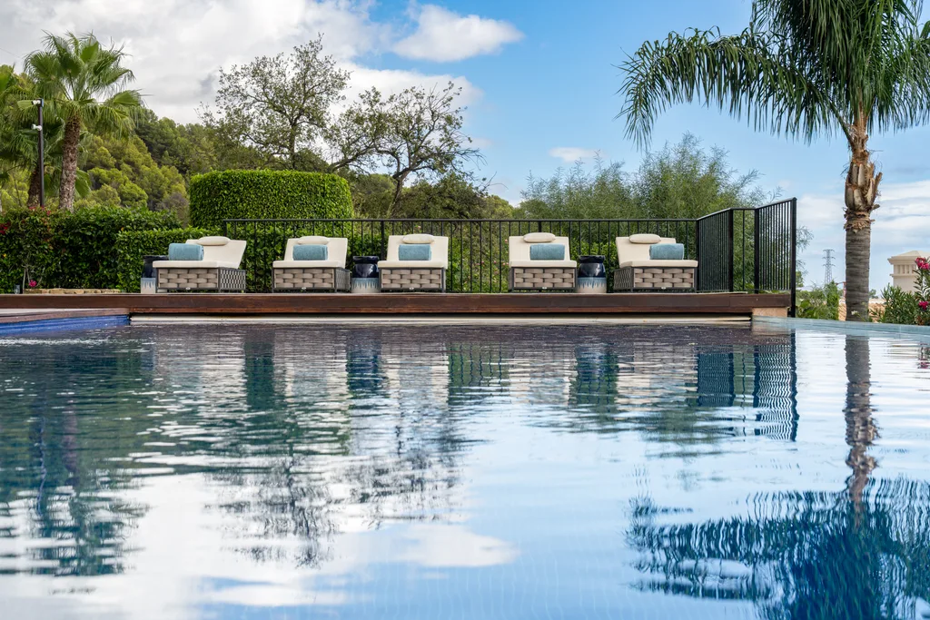 - Two outdoor swimming pools with waterfall features