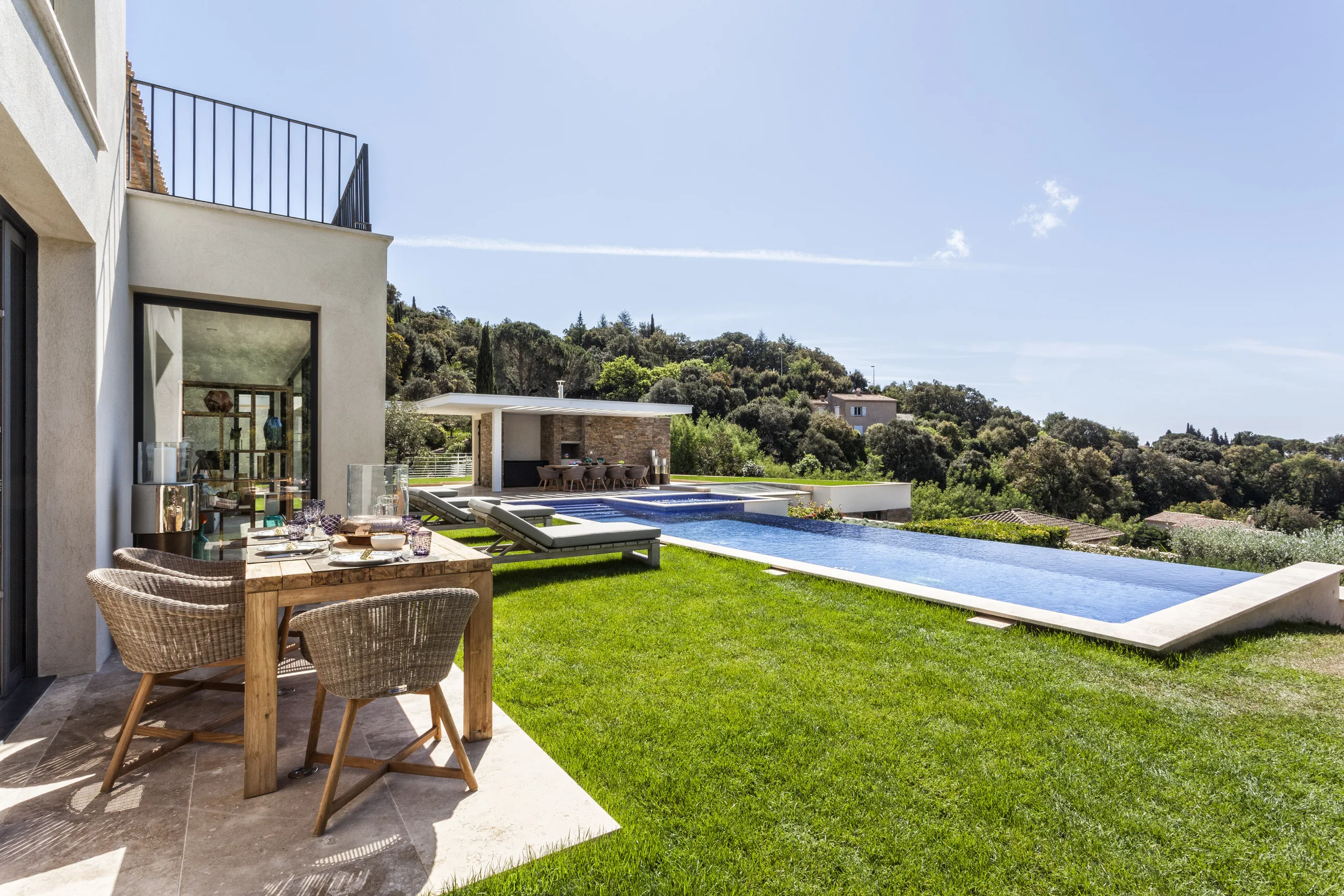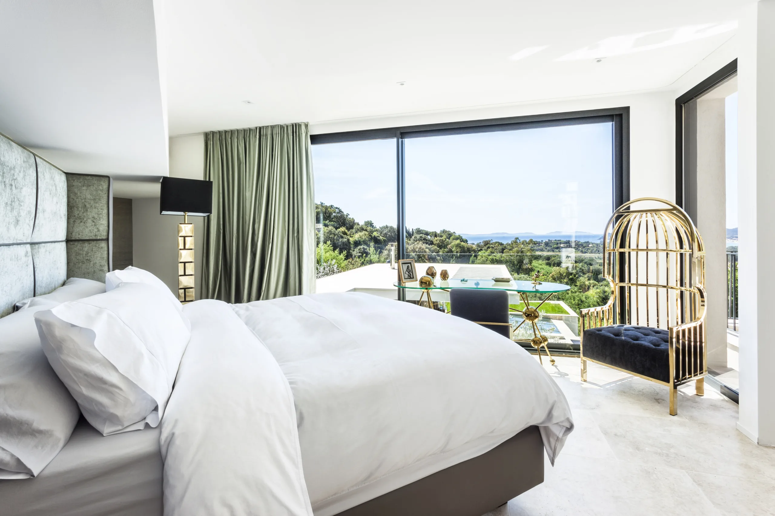 Villa Zeluna is a spectacular contemporary designer residence ideally located in La Croix Valmer, close to Saint-Tropez and the beaches of Ramatuelle and Gigaro. The property boasts stunning ocean views over the Golden Islands and vineyards. It is set in an incredibly quiet environment, offers 10 bedrooms, and can accommodate up to 20 people. The villa is elegantly decorated and furnished with exclusively designed furniture.